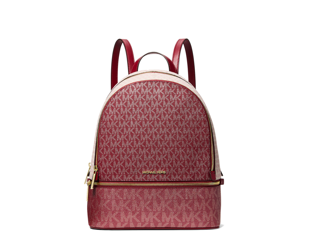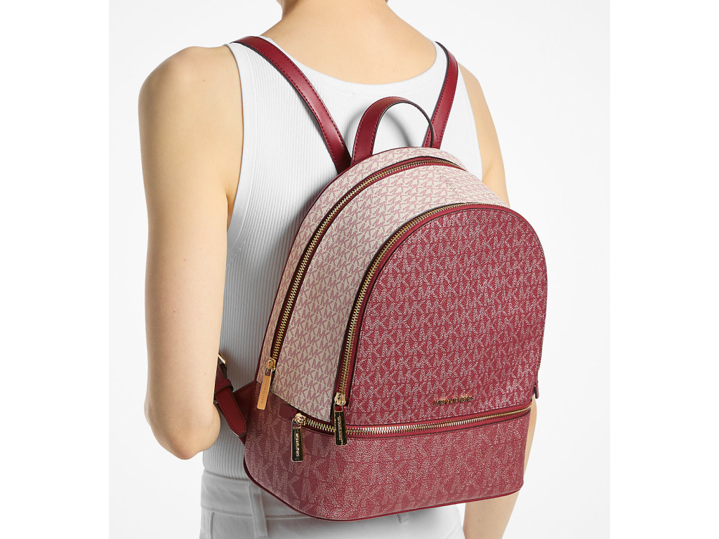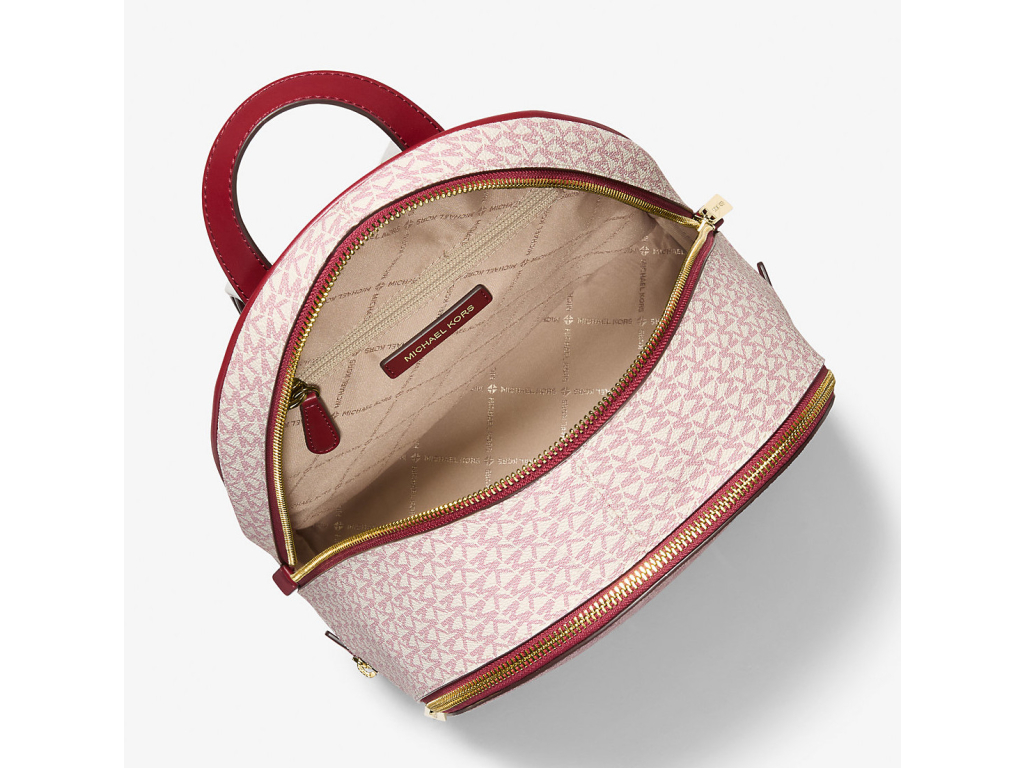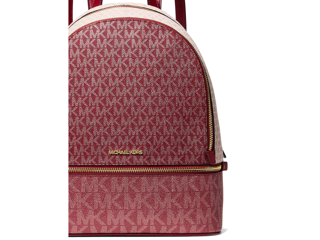 Michael Kors Batoh Rhea Medium Metallic Signature Logo Backpack Cherry