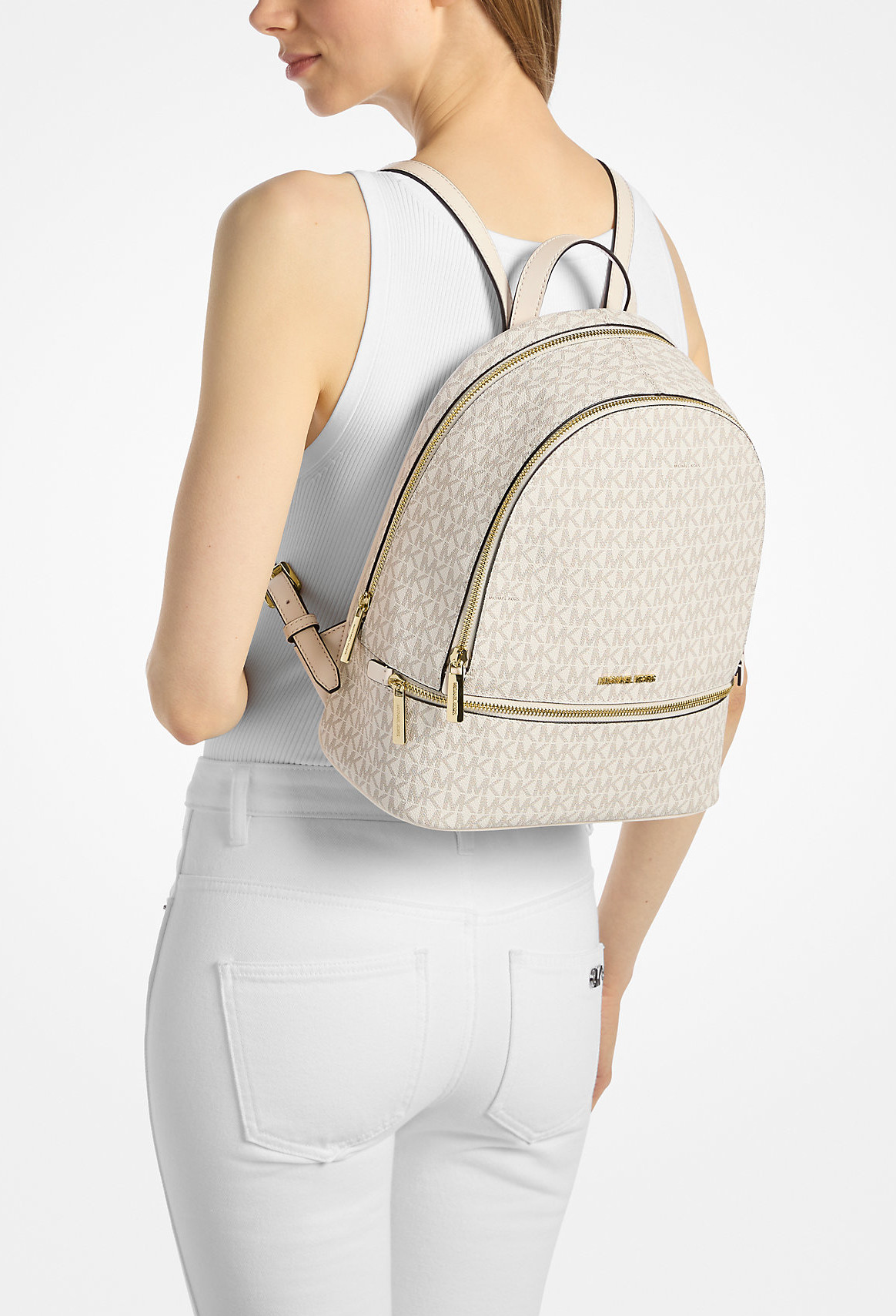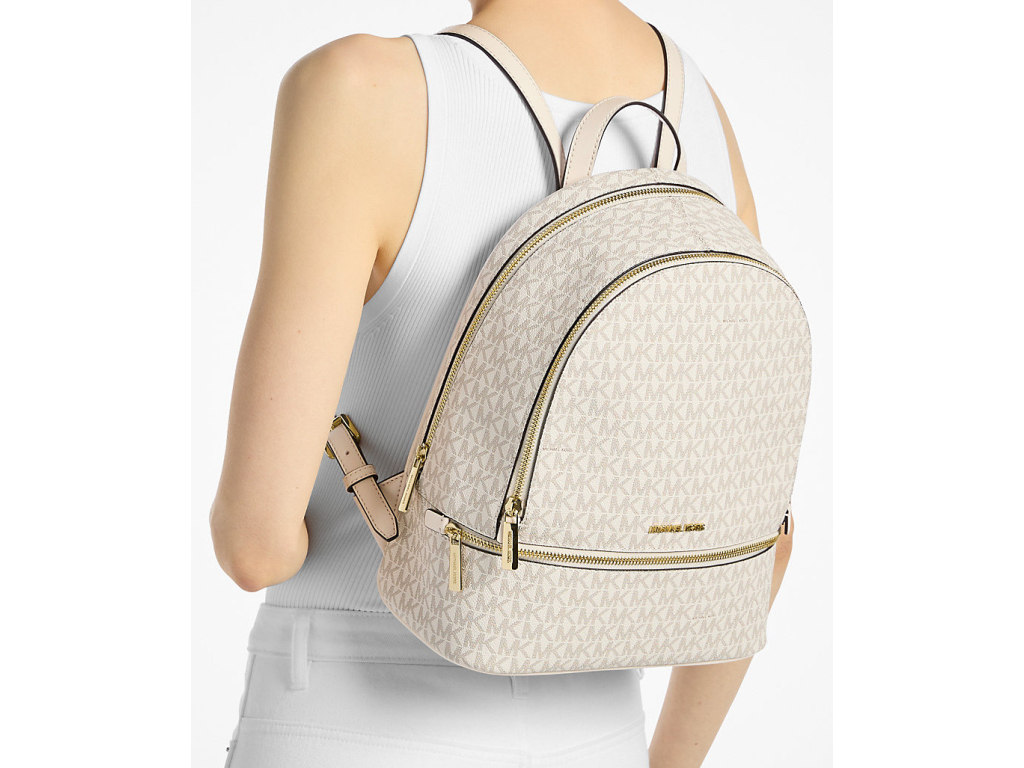 Michael Kors Batoh Rhea Medium Signature Logo Backpack Light Cream Multi