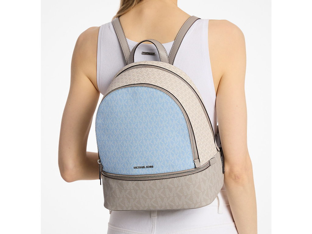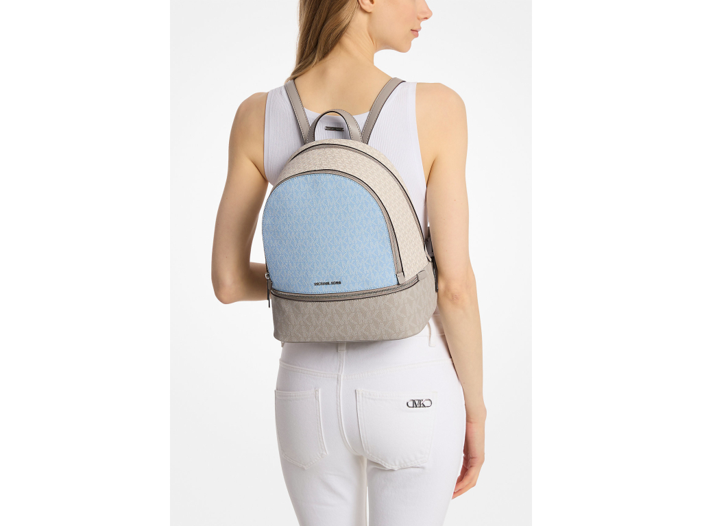 Michael Kors Rhea Medium Signature Logo Backpack Lt Sky Mlt