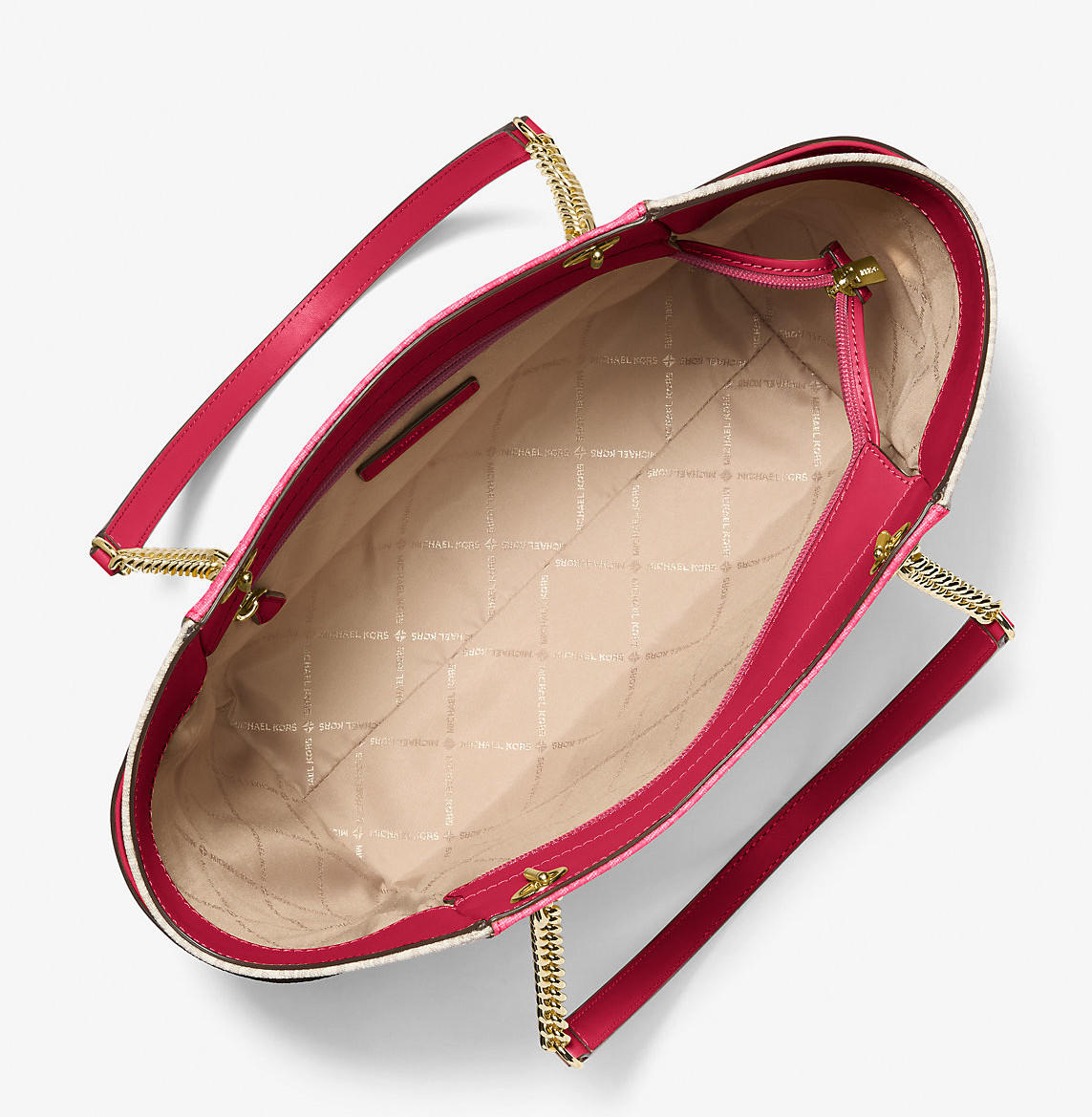 Michael Kors Jet Set Large Color-Block Signature Logo Tote Bag Cherry Multi