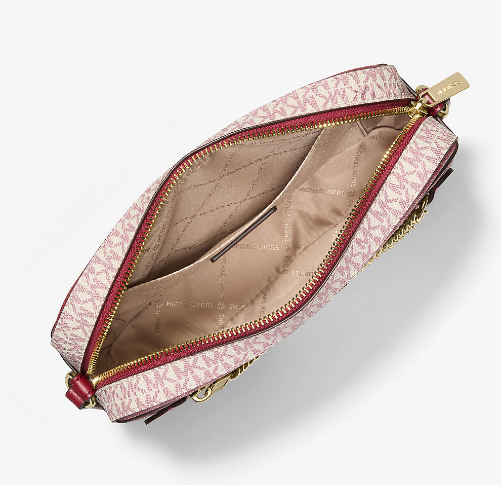 Michael Kors Jet Set Large Metallic Signature Logo Crossbody Bag Cherry