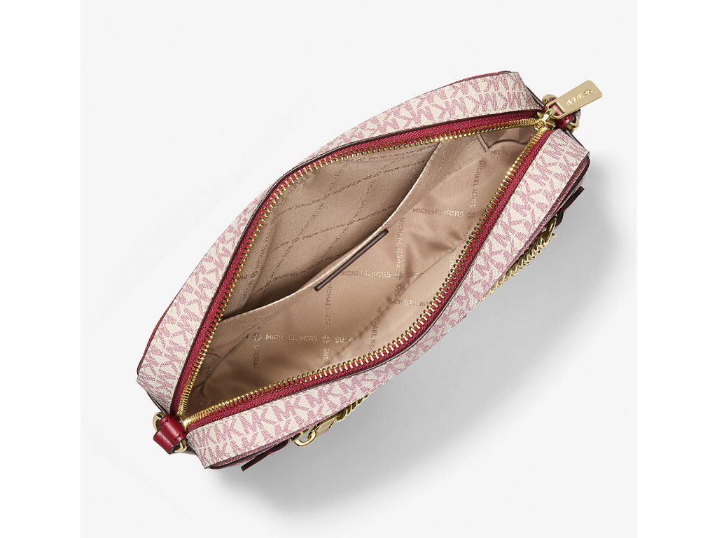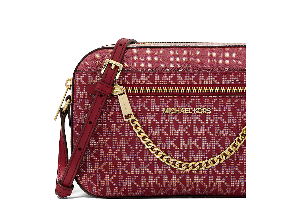 Michael Kors Jet Set Large Metallic Signature Logo Crossbody Bag Cherry
