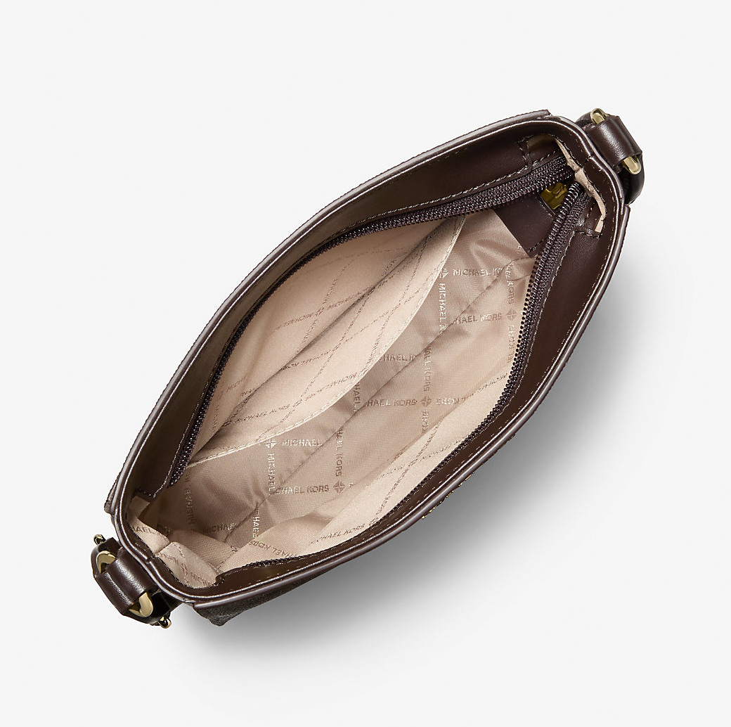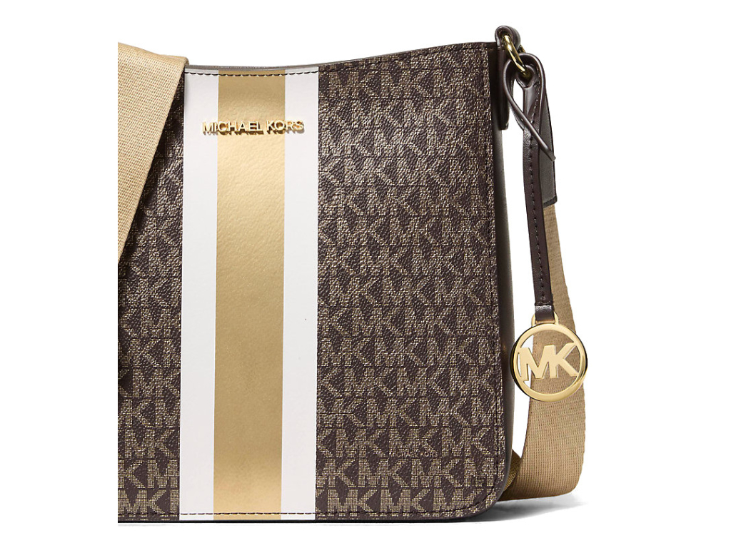 Michael Kors Kabelka Jet Set Small Signature Logo Stripe Crossbody Bag Brown
