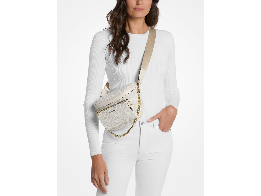 Michael Kors Kabelka Slater Medium Signature Logo Sling Pack Light Cream Multi