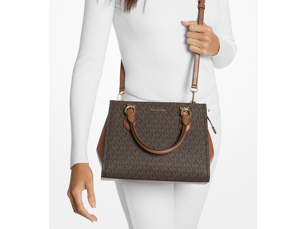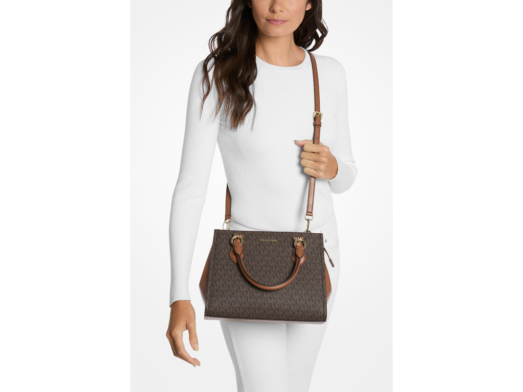 Michael Kors Marilyn Medium Signature Logo Convertible Satchel Brown