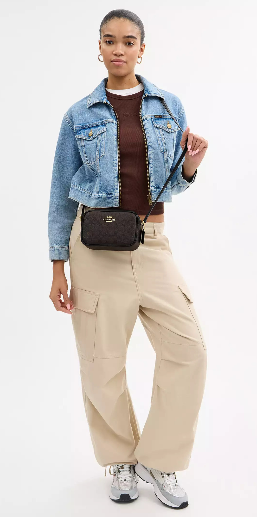 COACH Kabelka Mini Jamie Camera Bag In Signature Canvas Gold Walnut Black