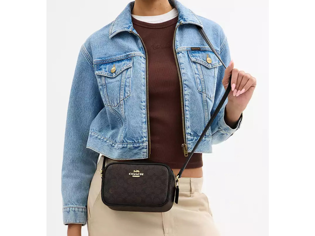 COACH Kabelka Mini Jamie Camera Bag In Signature Canvas Gold Walnut Black