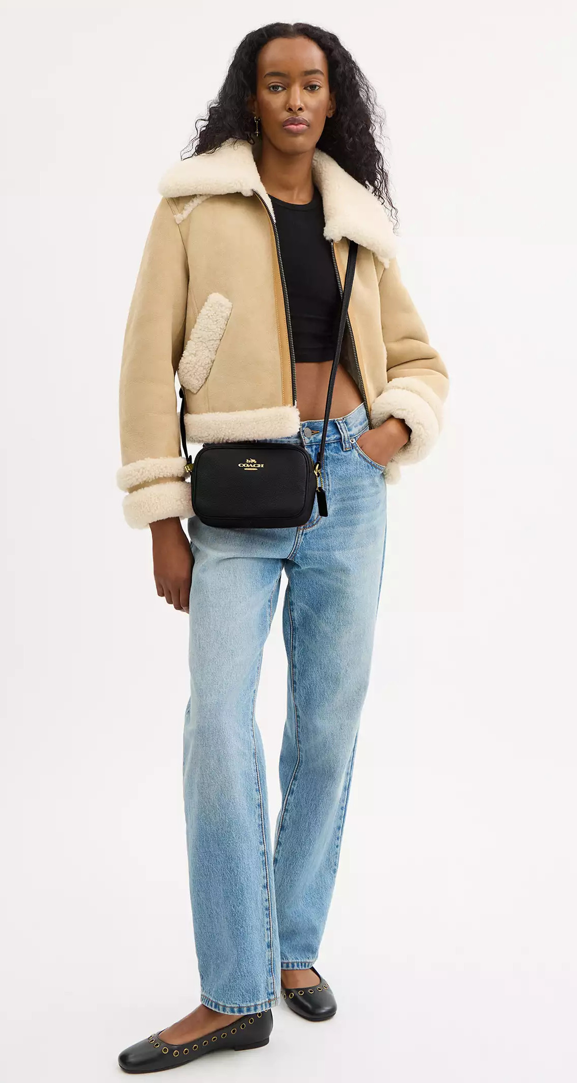 COACH Kabelka Mini Jamie Camera Bag Pebbled Leather Gold Black