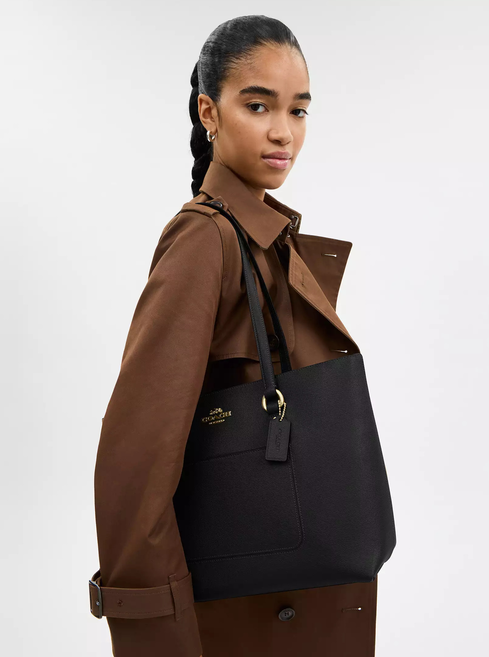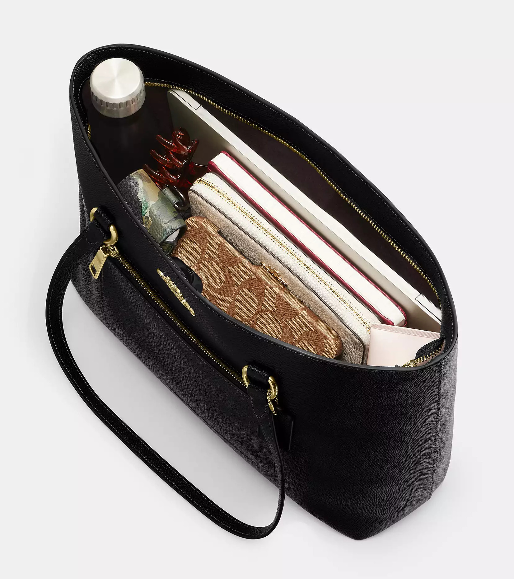 COACH Kabelka Station Tote Bag Crossgrain Leather Gold Black