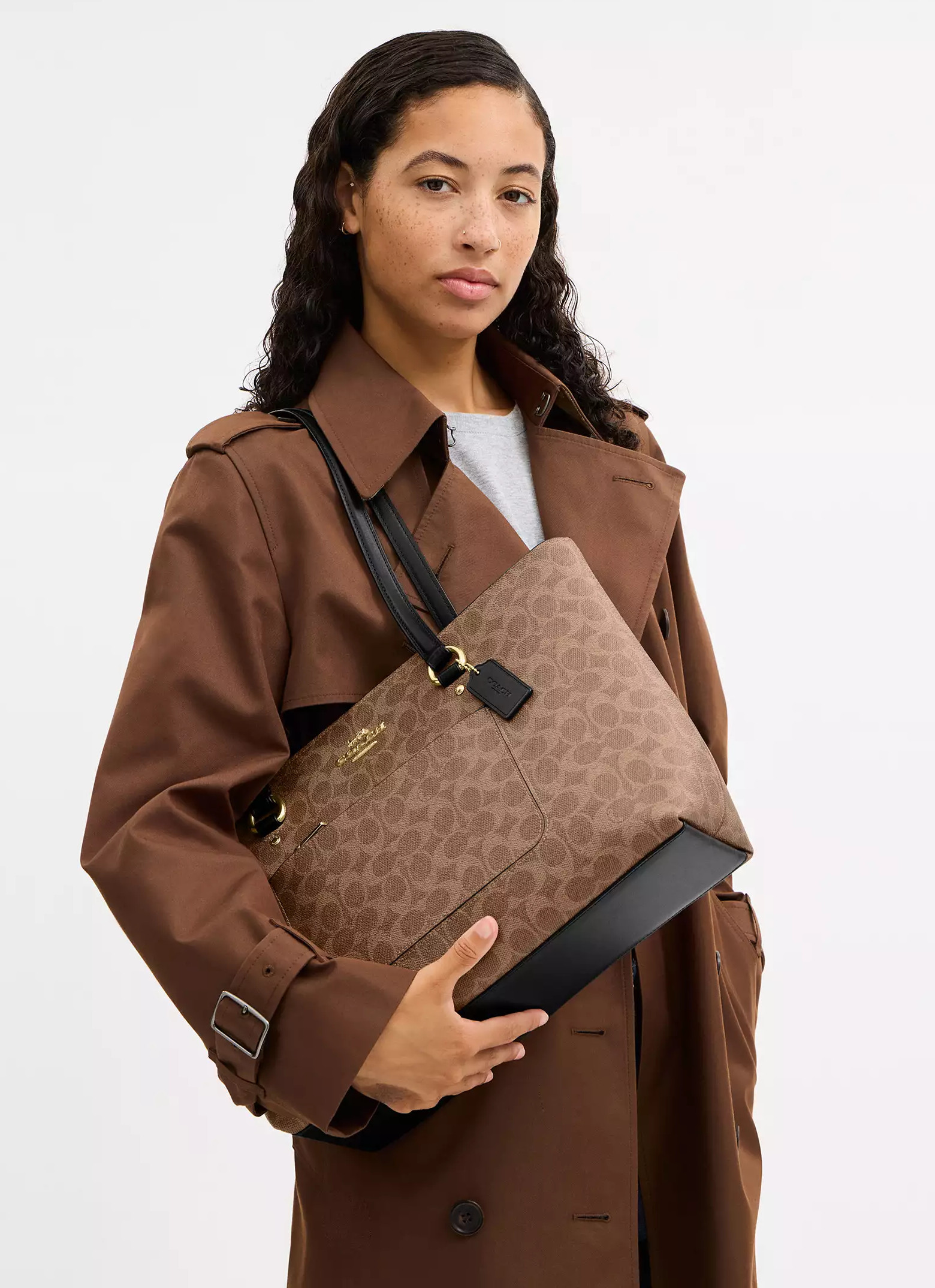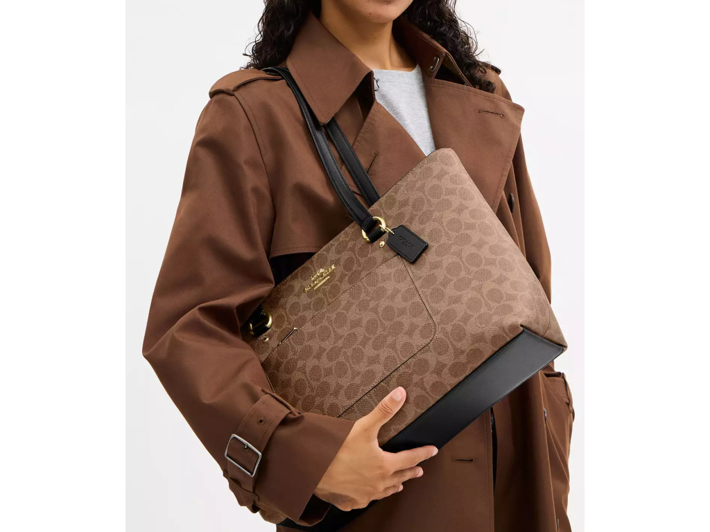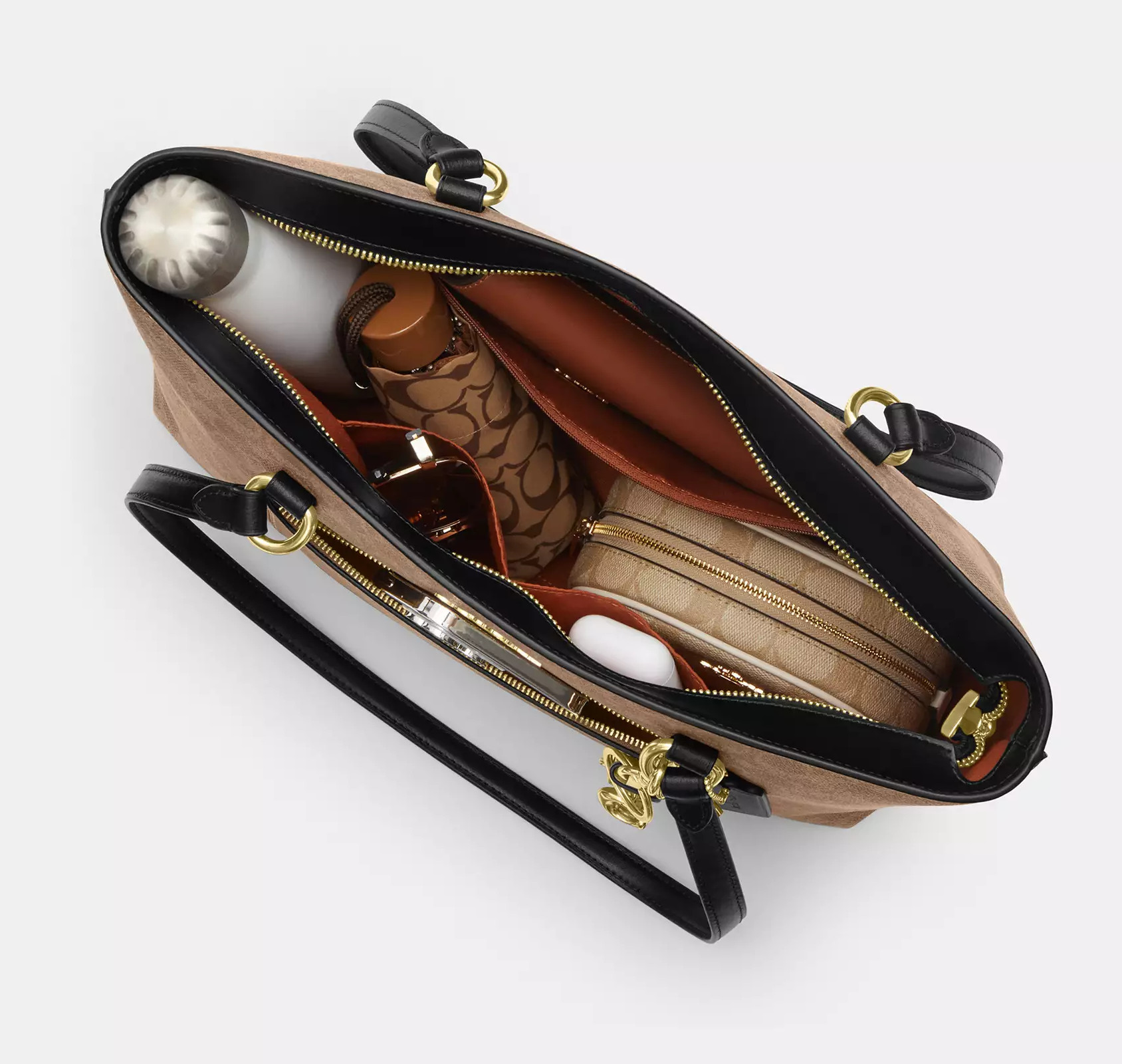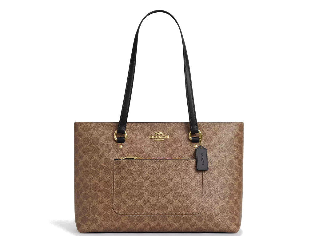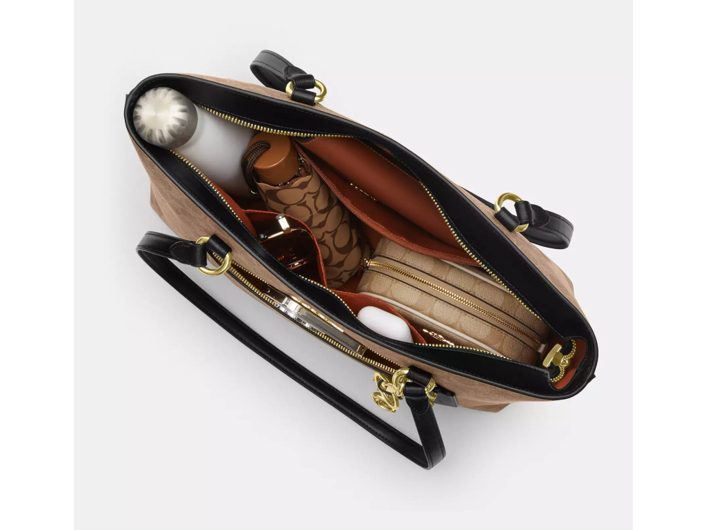 COACH Kabelka Station Tote Bag In Signature Canvas Gold Tan Black