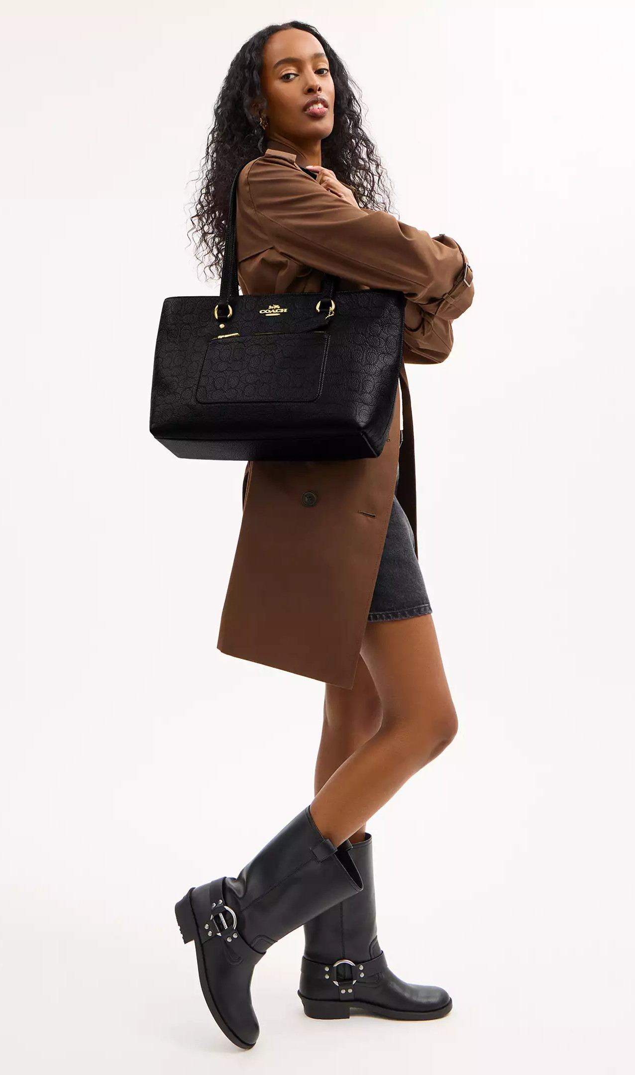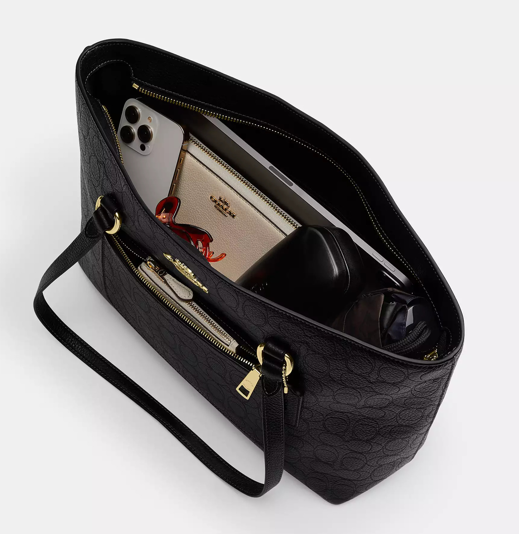 COACH Kabelka Station Tote Bag In Signature Pebbled Leather Gold Black