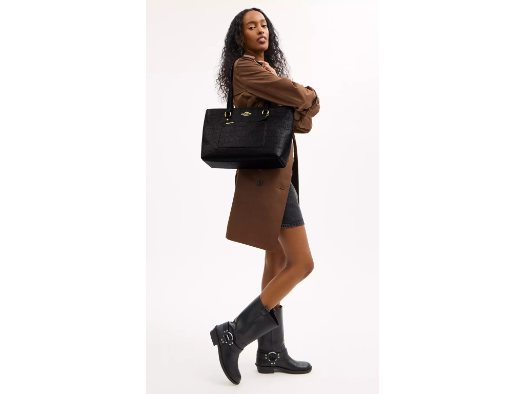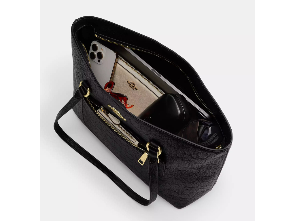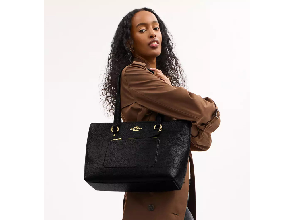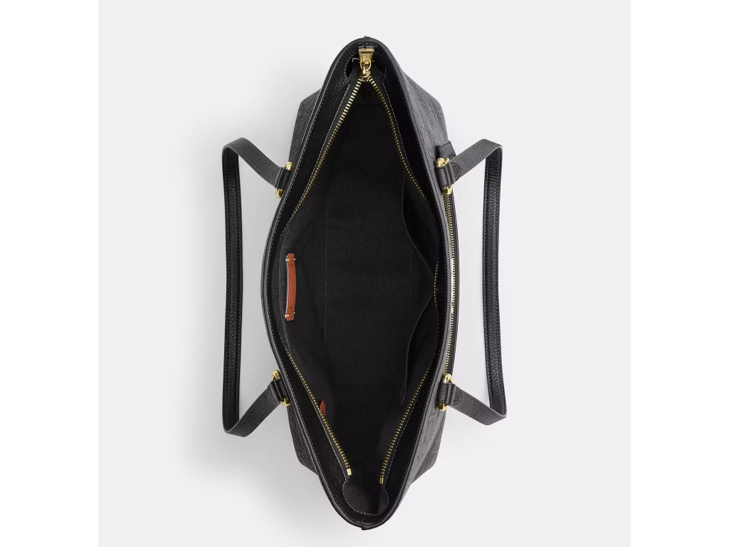COACH Kabelka Station Tote Bag In Signature Pebbled Leather Gold Black