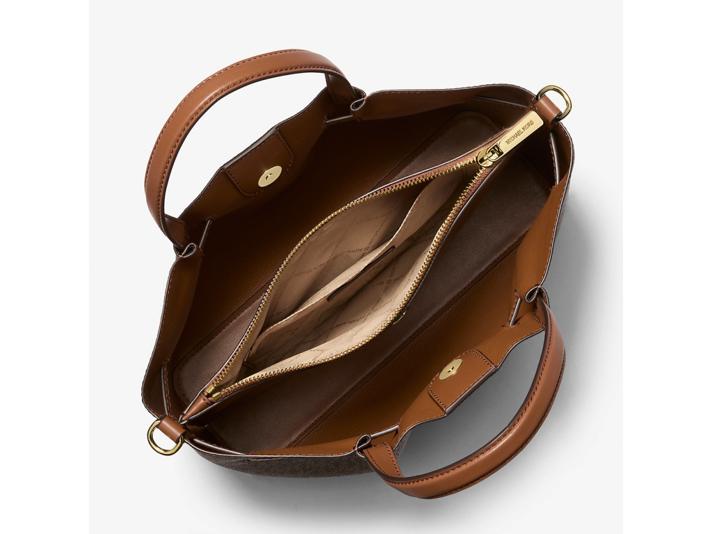 Michael Kors Carson Medium Signature Logo Satchel Brown