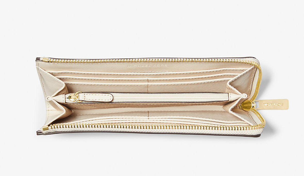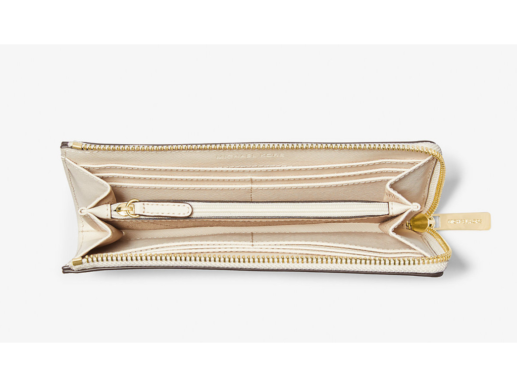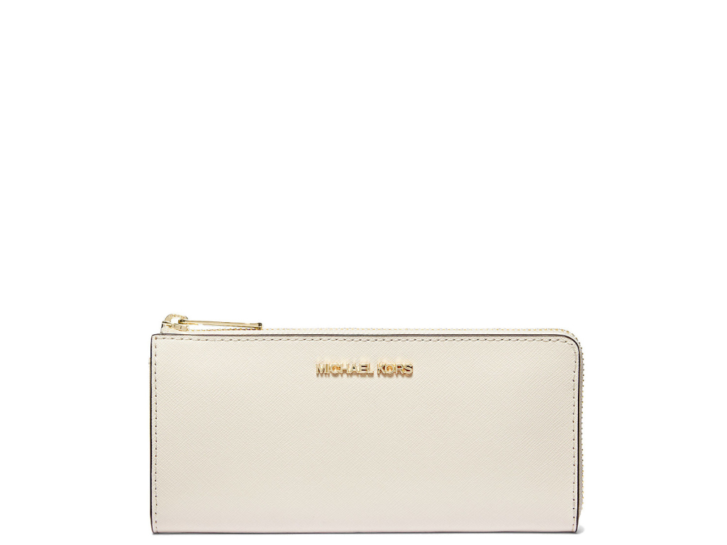 Michael Kors Jet Set Travel Large Saffiano Leather Quarter-Zip Wallet Light Cream