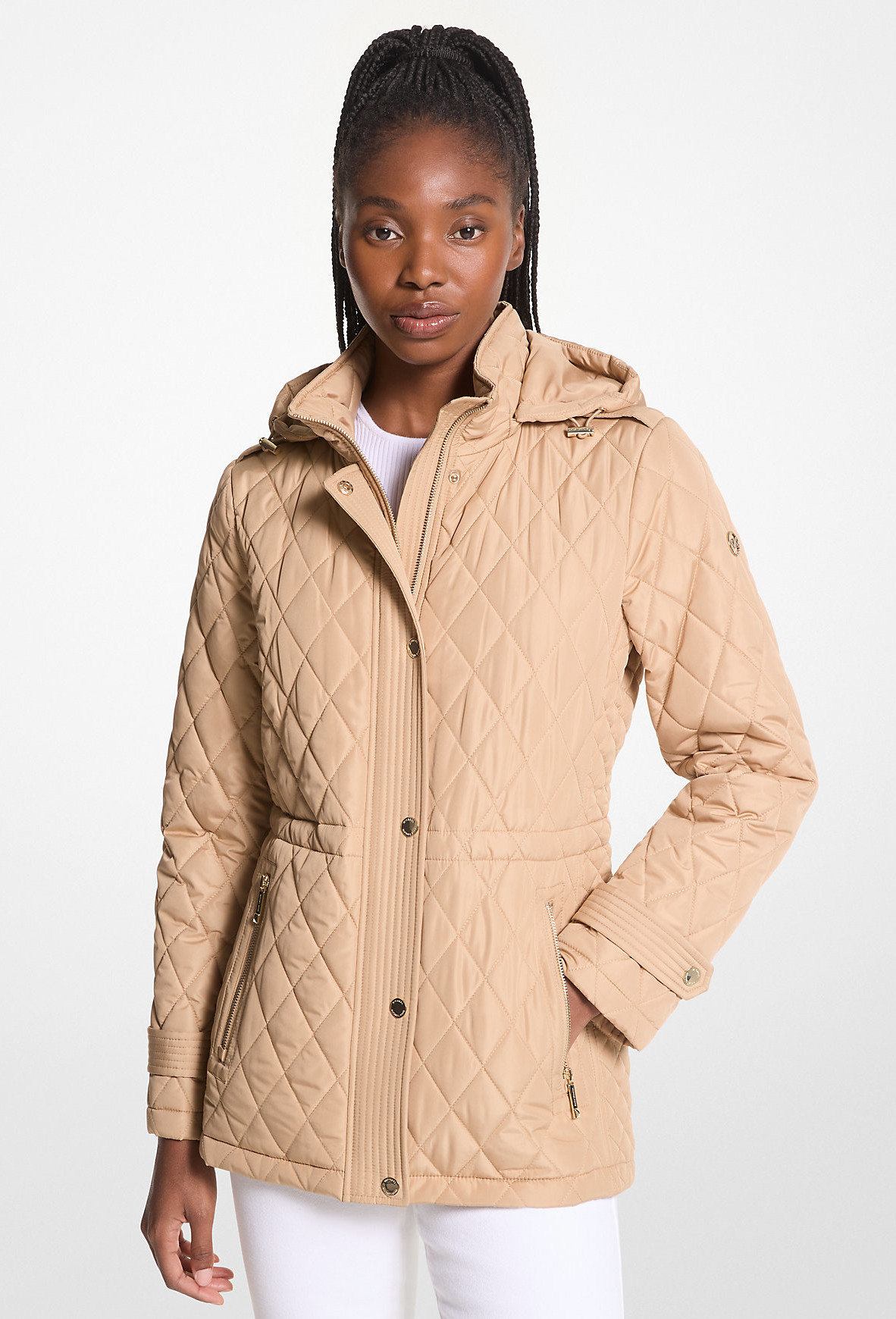 Michael Kors Bunda Quilted Hooded Jacket Khaki